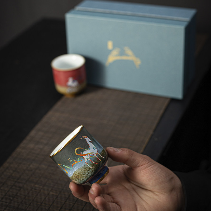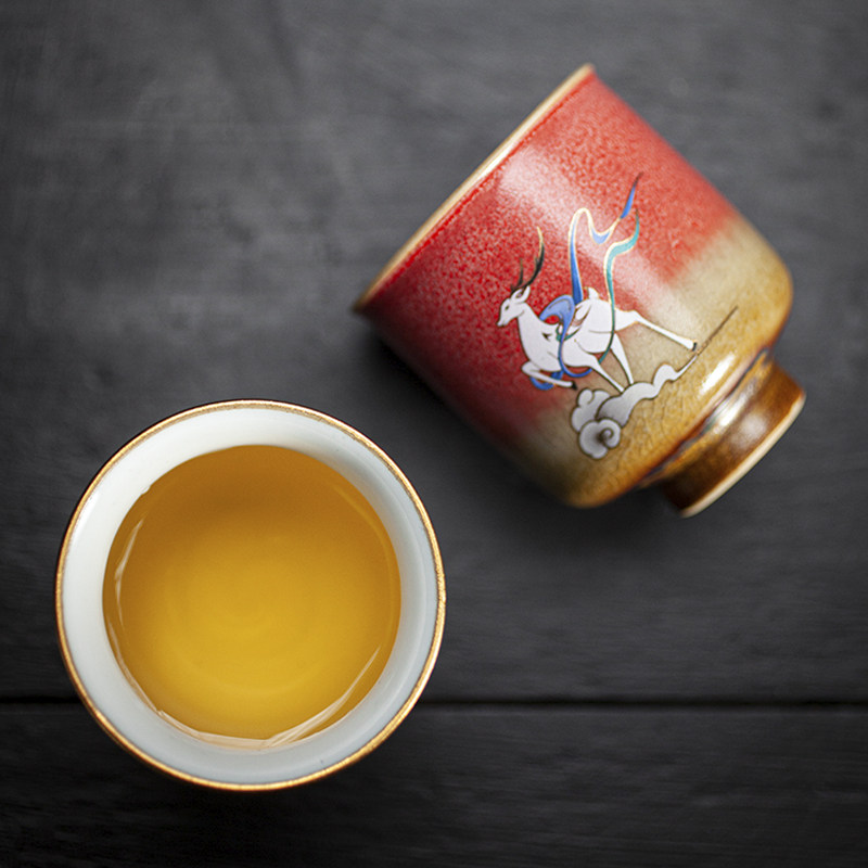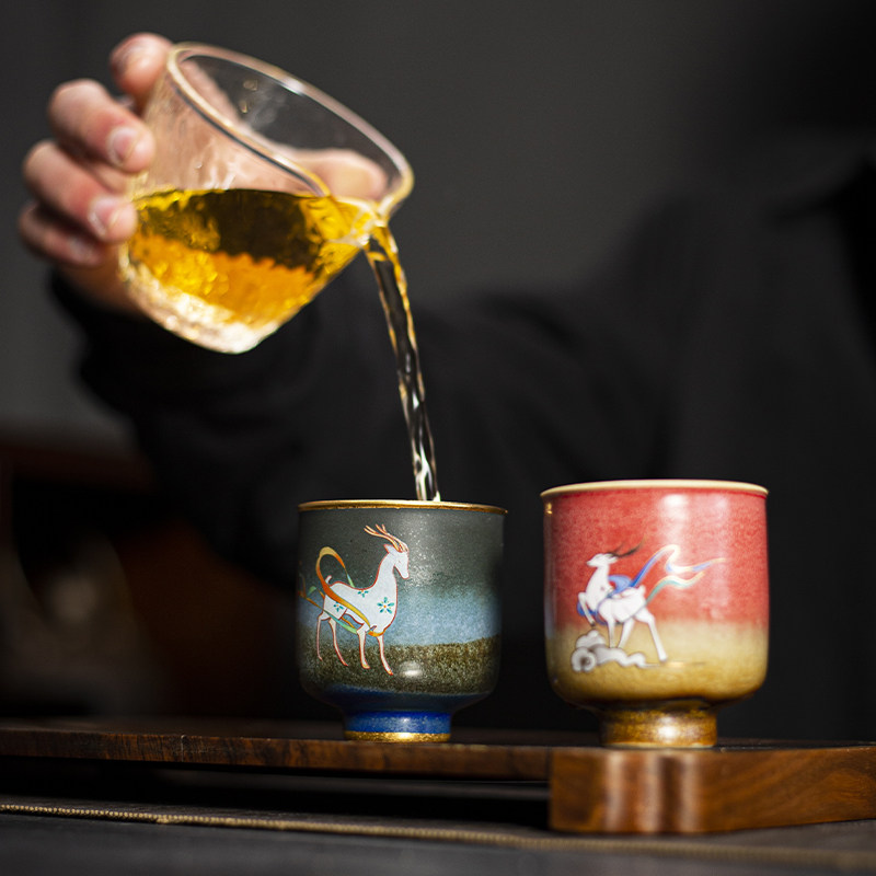 Coarse Pottery Tea Cup Kiln Change Stone Red Glaze Nine Color Deer Pair Cup Ceramic Tea Tea House owner Individual Cup Tea drinking Cup Single Cup