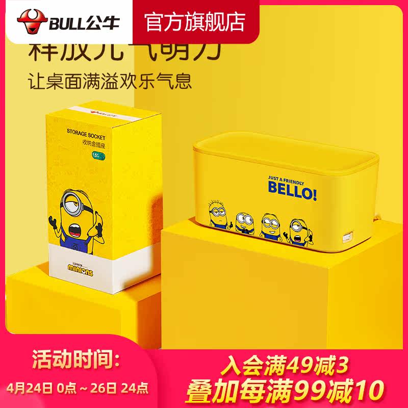 Bull Socket Small Yellow Man Inserted Row Extension Cord Extension Wire Home Multifunction Power Supply Containing Box