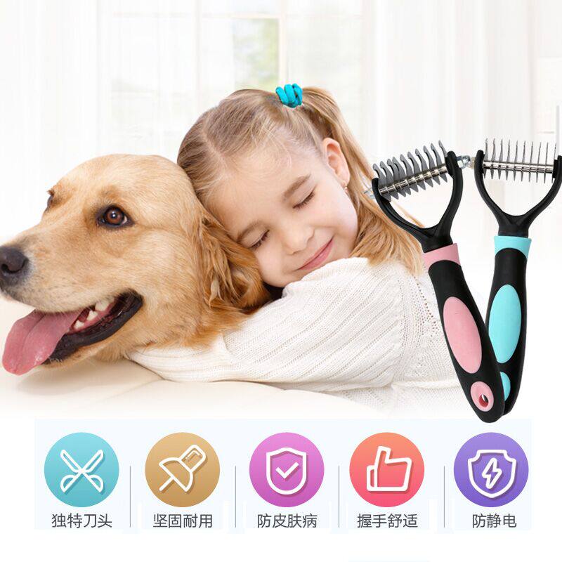 Blue double head knife delivery needle comb (with a single delivery pet wet towel in the collection) pink double head knife sending needle comb (with a single delivery pet wet towel in the collection)