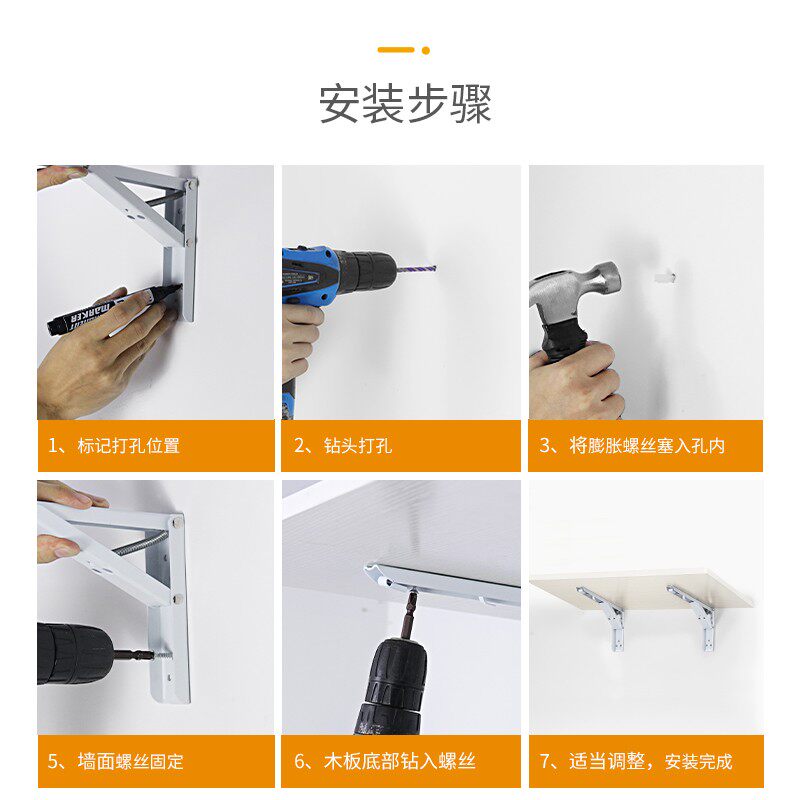 KOB Stainless Steel Folding Tripod Wall Bearing Bracket Separator Shelf Active Telescopic Laminate Shelf
