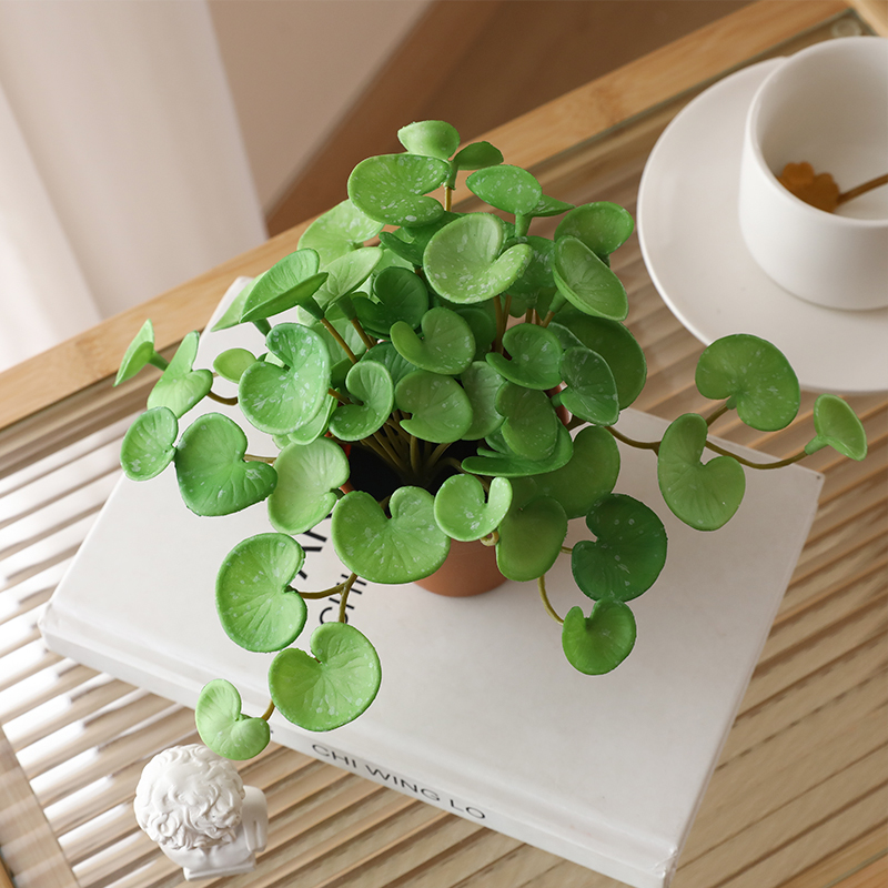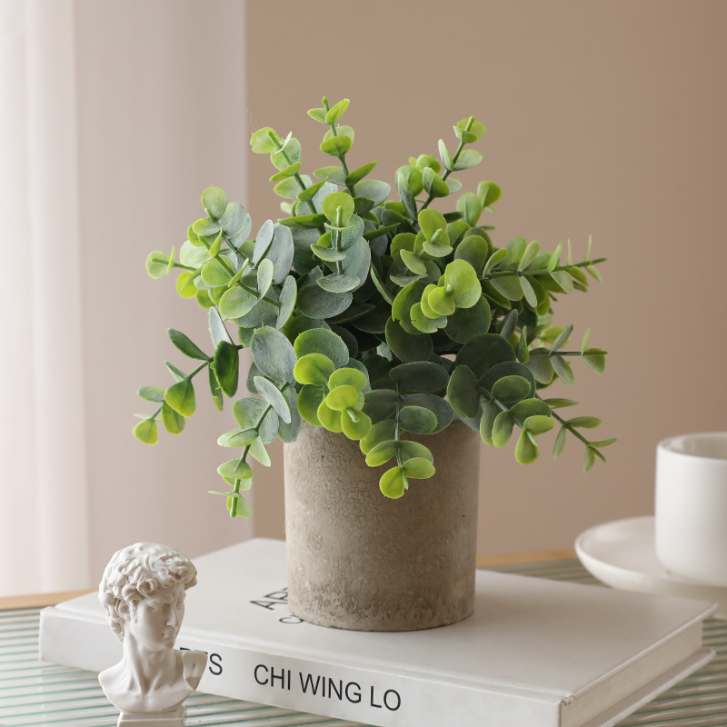 Simulation of green plant small pot plant Eughali fake pot view indoor living room with desktop decoration