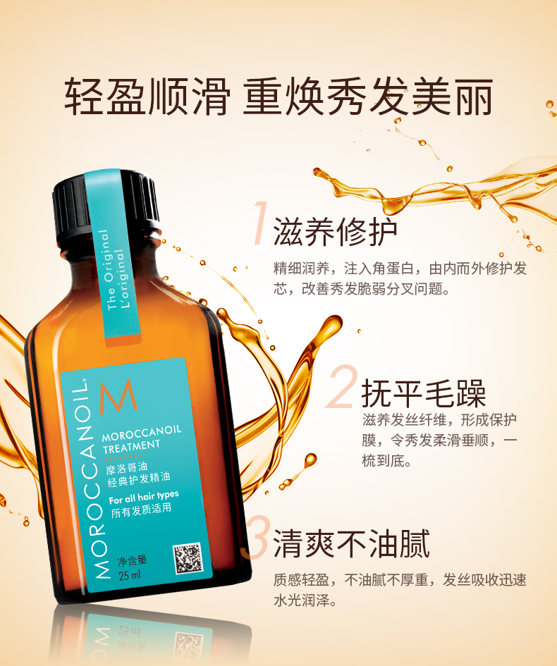 Moroccanoil Moroccan oil classic hair care essential oil light absorption repair rough split ends lasting fragrance