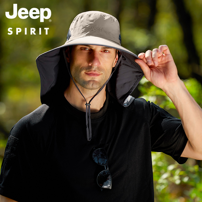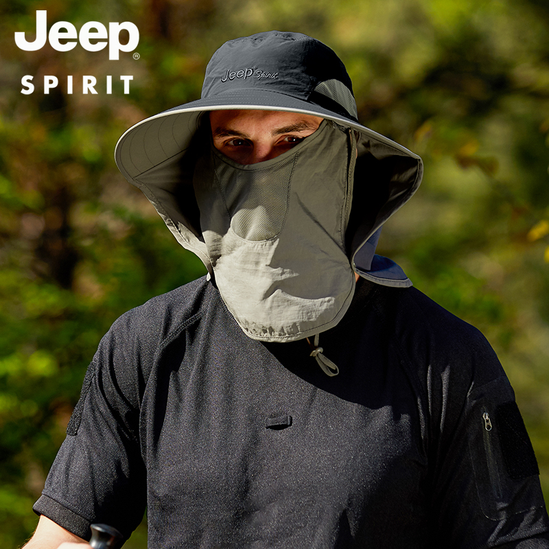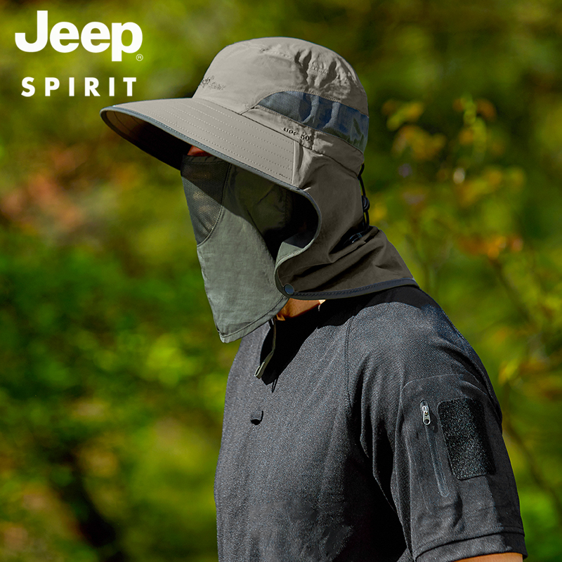 JEEP jeep cover face sunscreen hat men's fisherman hat summer quick-drying sunshade fishing foldable men's sun hat