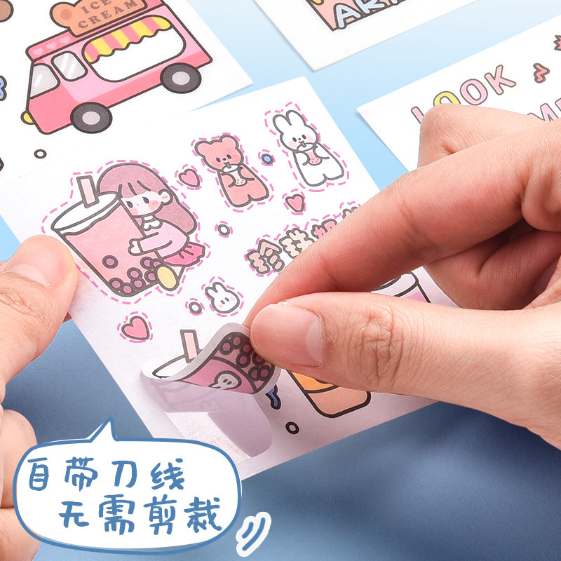 Waterproof Cute Hand Ledger Sticker Set of PET sticker Illustrated Hand Ledger Children Girl Girl Hearts ins Wind Gift Bags Cane decorations Adhesive Small Patterns Transparent Water Cups Cartoon Cheap Sticker stickers