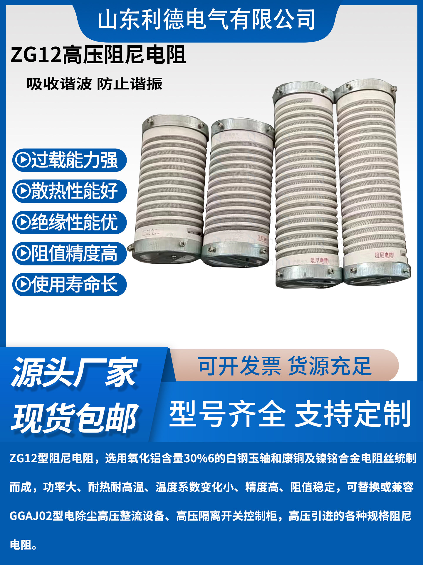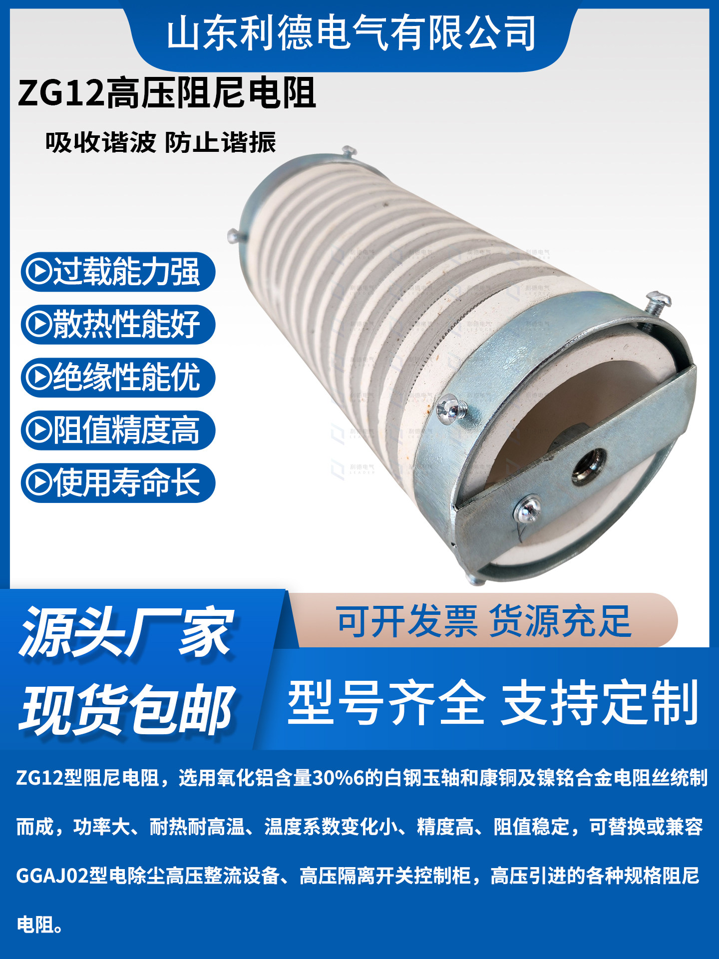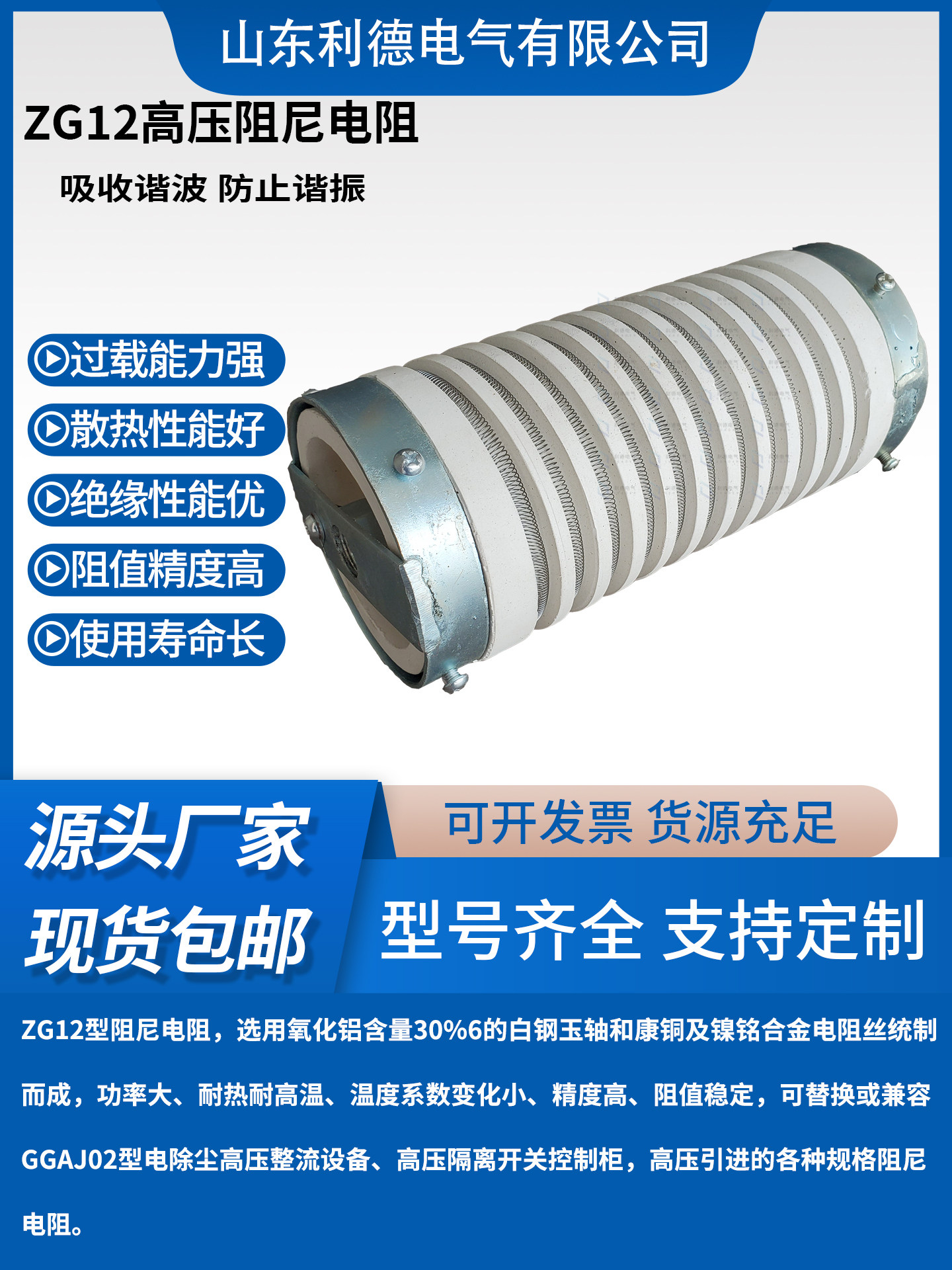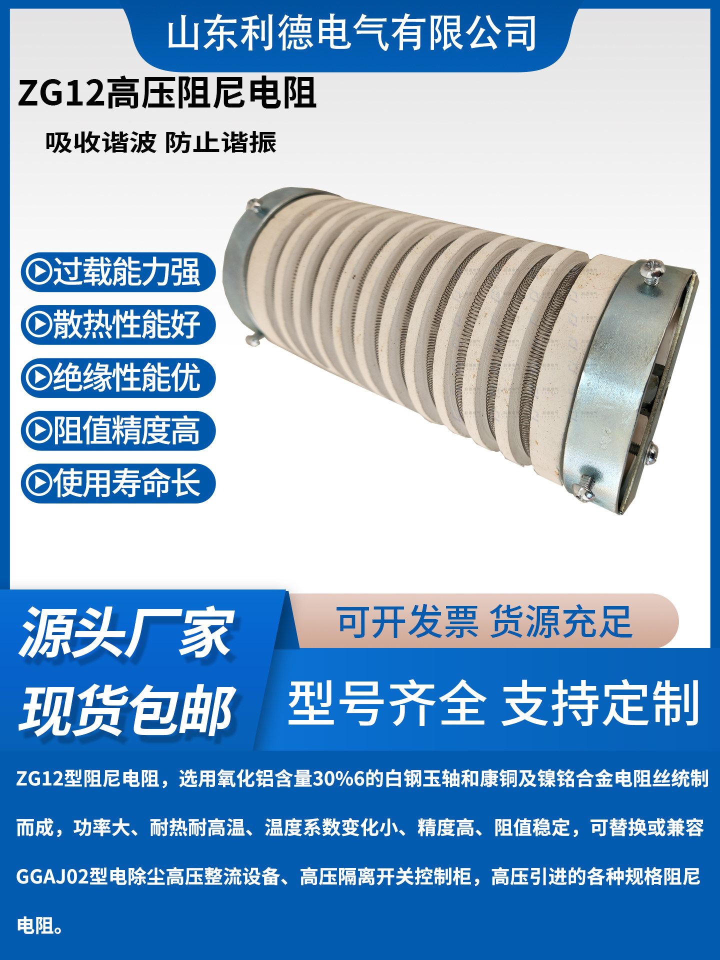 ZG12 series electrostatic precipitator high voltage wire wound damping resistor 400W 800W 2000W high power resistor