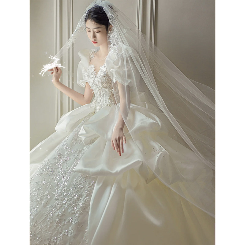 Satin main wedding dress 2022 new bridal extravaganza Extravagant Trailer style out-of-the-door Antique Palace Windy High End Light