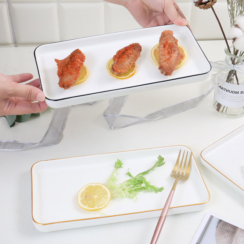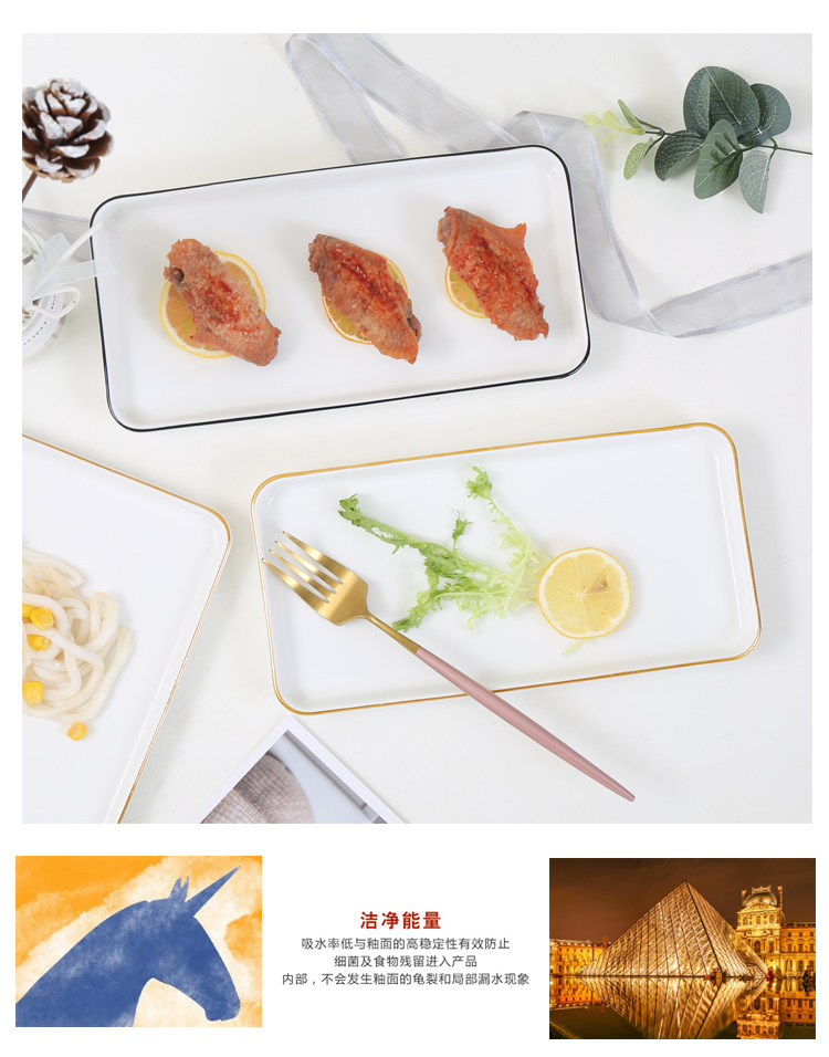 Creative ceramic dinner plate rectangular pendulum disc sweet dishes Home pastry dish Western dining cutlery Chicken Wings Sushi Pan-Taobao
