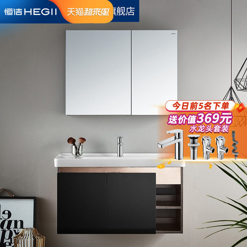 HEGII Hengjie Bathroom Solid Wood Bath Cabinet Composition Nordic Hung Wall Style Dressing Room Wash Table Mirror Cabinet Holding Cabinet
