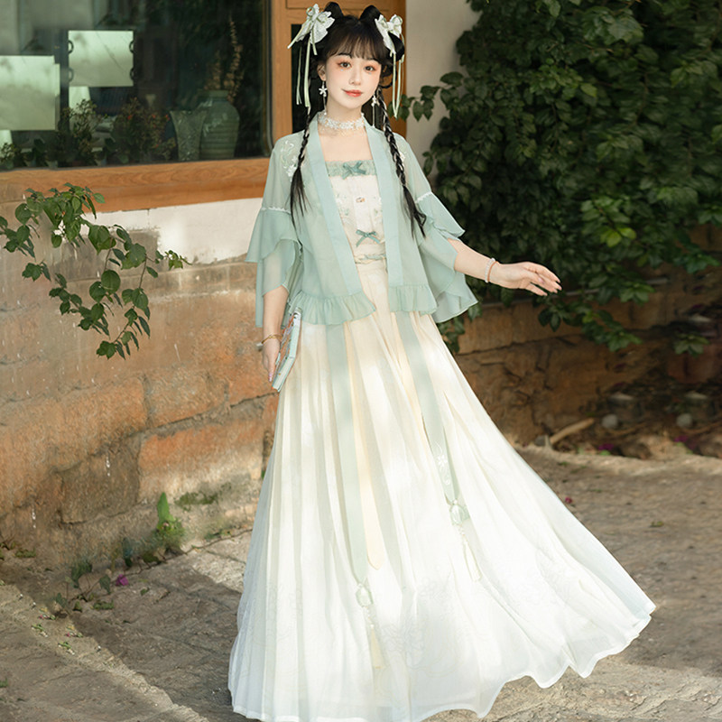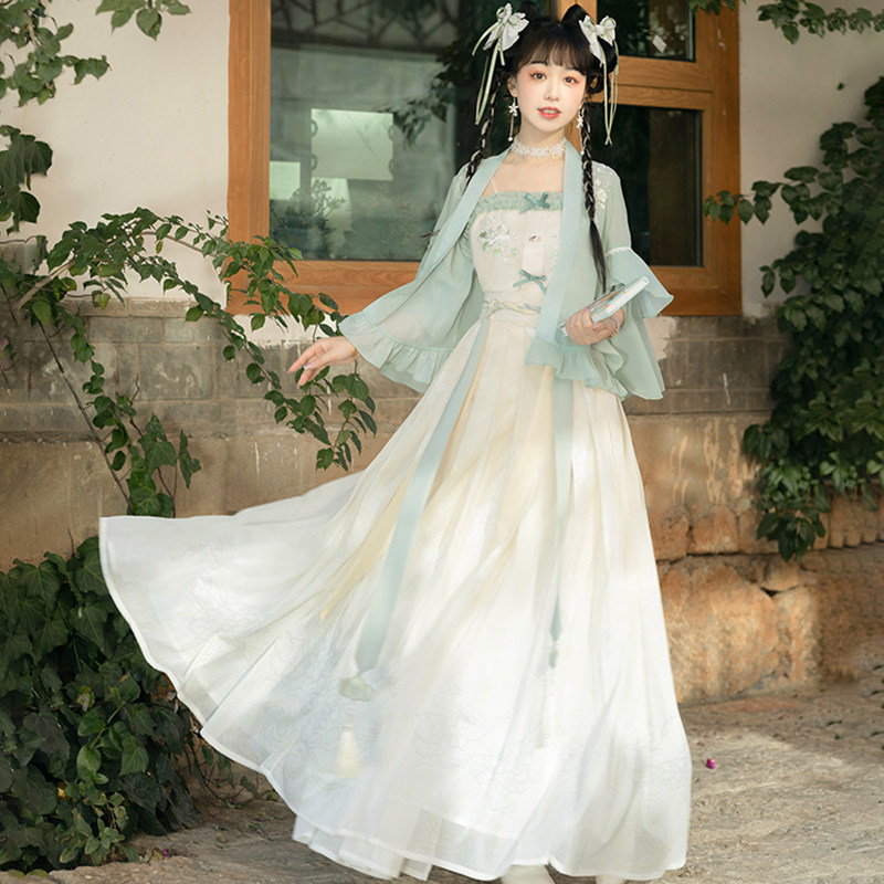 Evening camellia original Hanfu women's daily Han elements Chinese style suspender skirt Ru skirt ancient costume spring and autumn three-piece set
