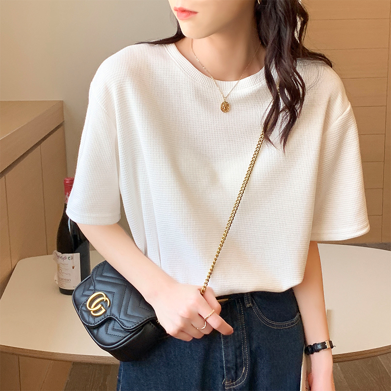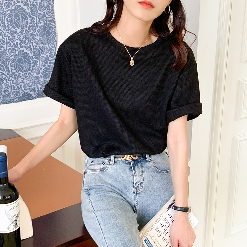 Short sleeve t-shirt woman 2022 Summer new ins Chains with small crowd design Black Loose Half Sleeve Waffle Blouse