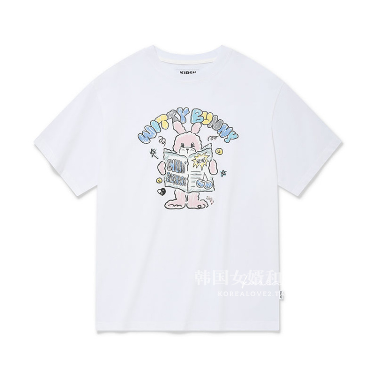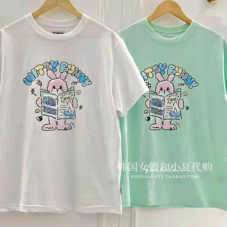 South Korea Straight Mail Kirsh Cherry Rabbit Short Sleeve T-Shirt Women's Round Collar Loose Blouses 2022 Summer New