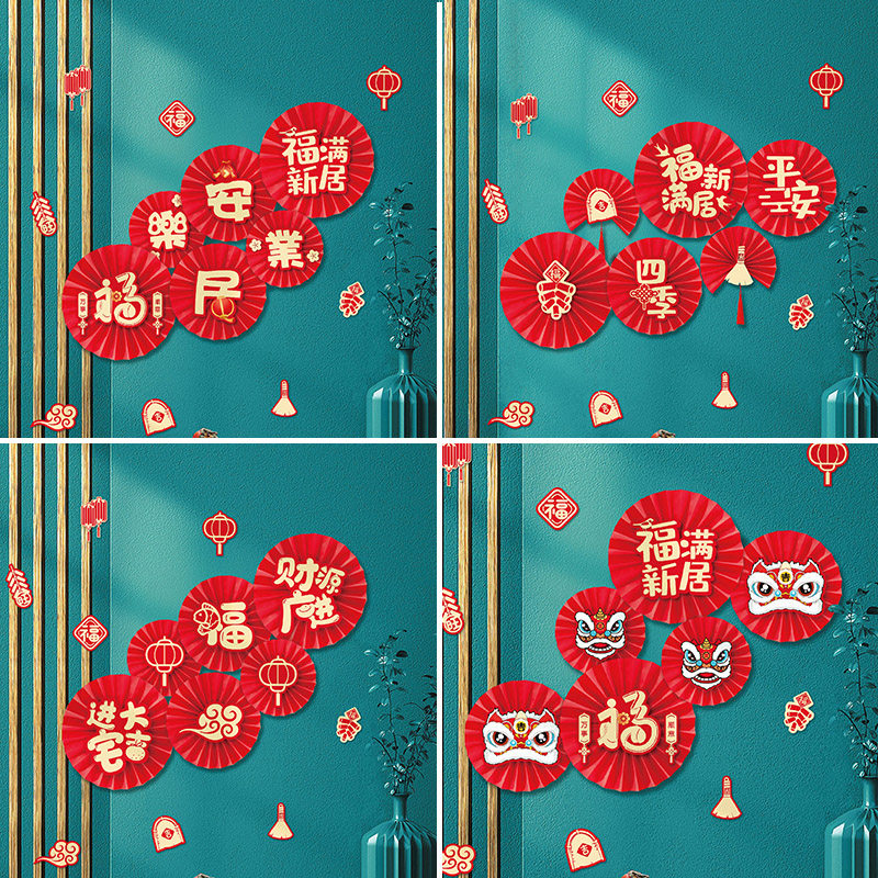 Fuman's new home, live and work in peace, paper fan, happy housewarming, five blessings, paper fan, good day's move, auspicious day's house paper fan