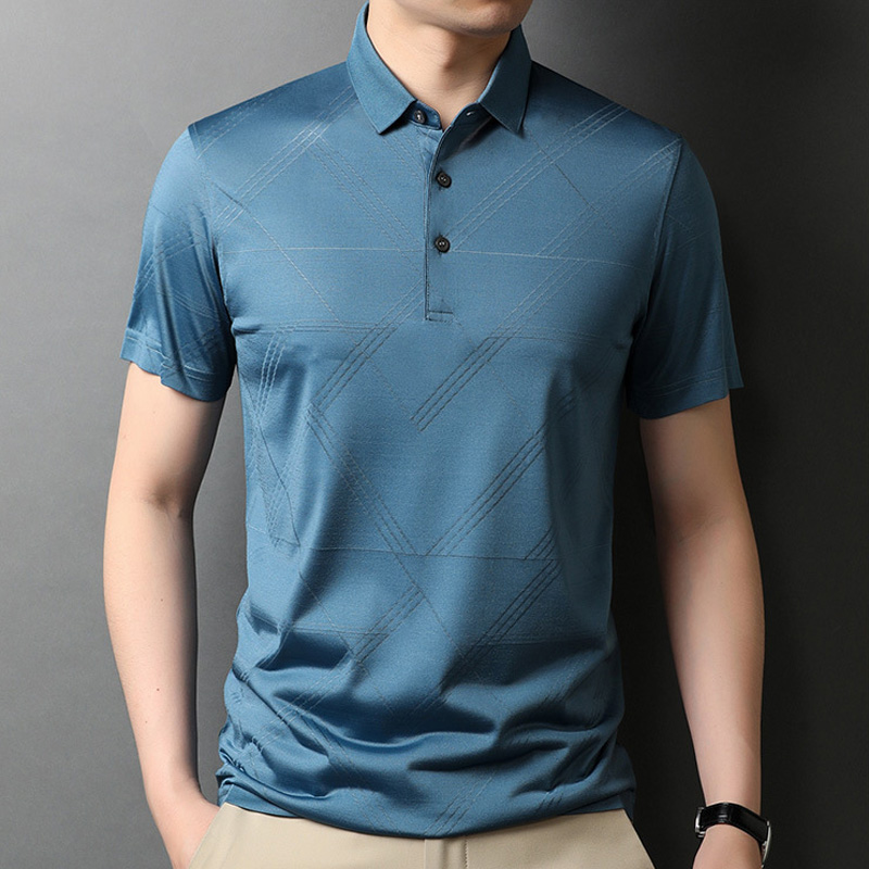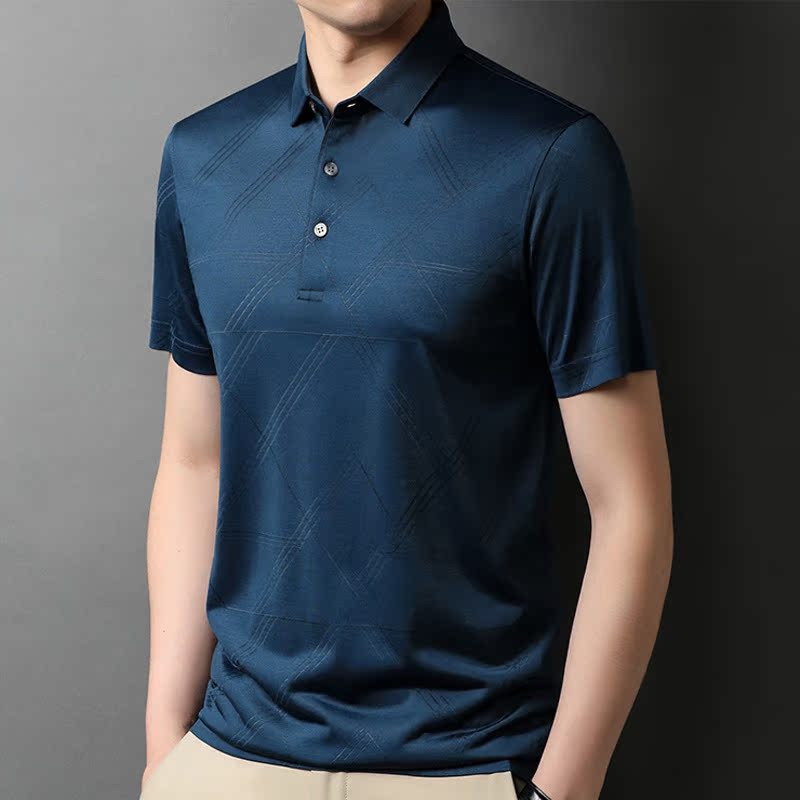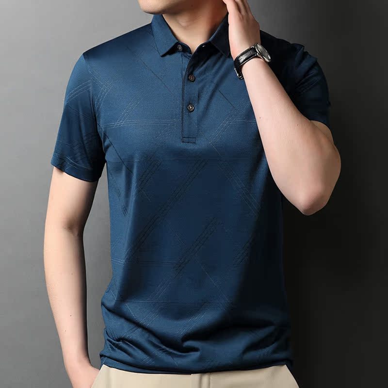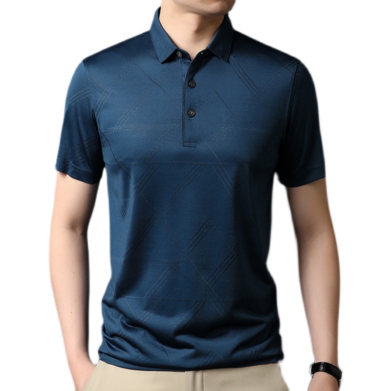 ROADMAKER2022 Summer New Mulberry Silk Short Sleeve Men's New Fashion Middle-aged Man Style Flipped Polo Shirt