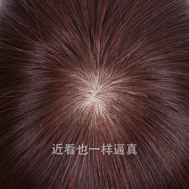 Short hair cover white hair top wig head curtain full real hair additional hair delivery needle style fluffy and thin full hand knitted hair replacement block