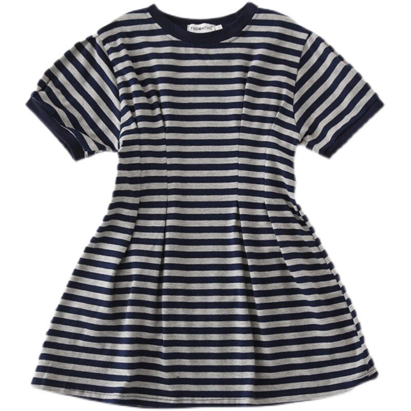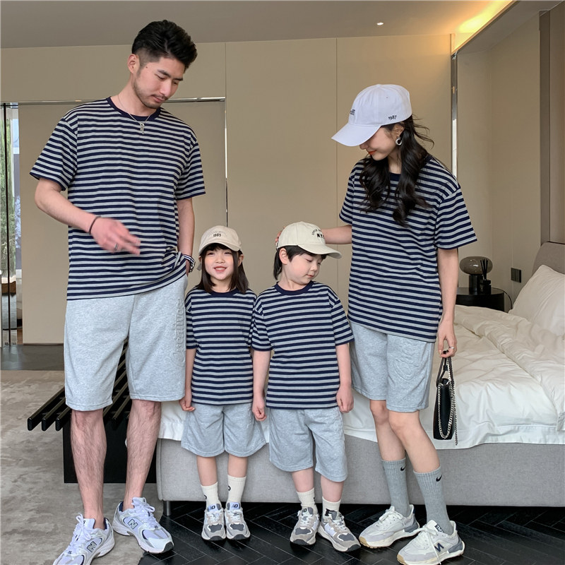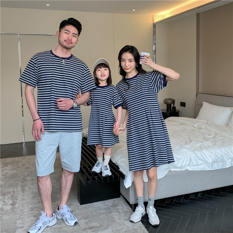 Pro-son fit a four-mouth summer short sleeve striped T-shirt cotton mother and mother mother-son dress with a family of three