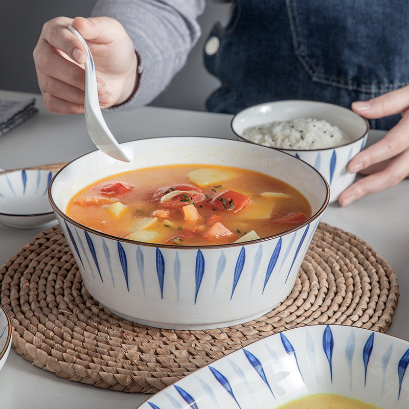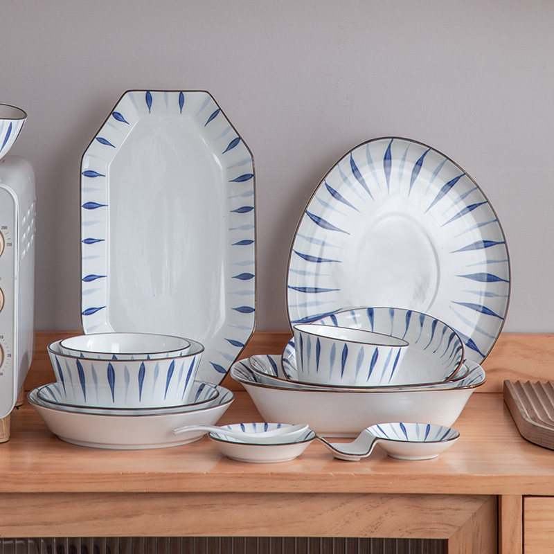 Japanese-style bowls, plates, ceramic tableware, household simple dinner plates, bowls, soup bowls, large fish plate combination creative tableware
