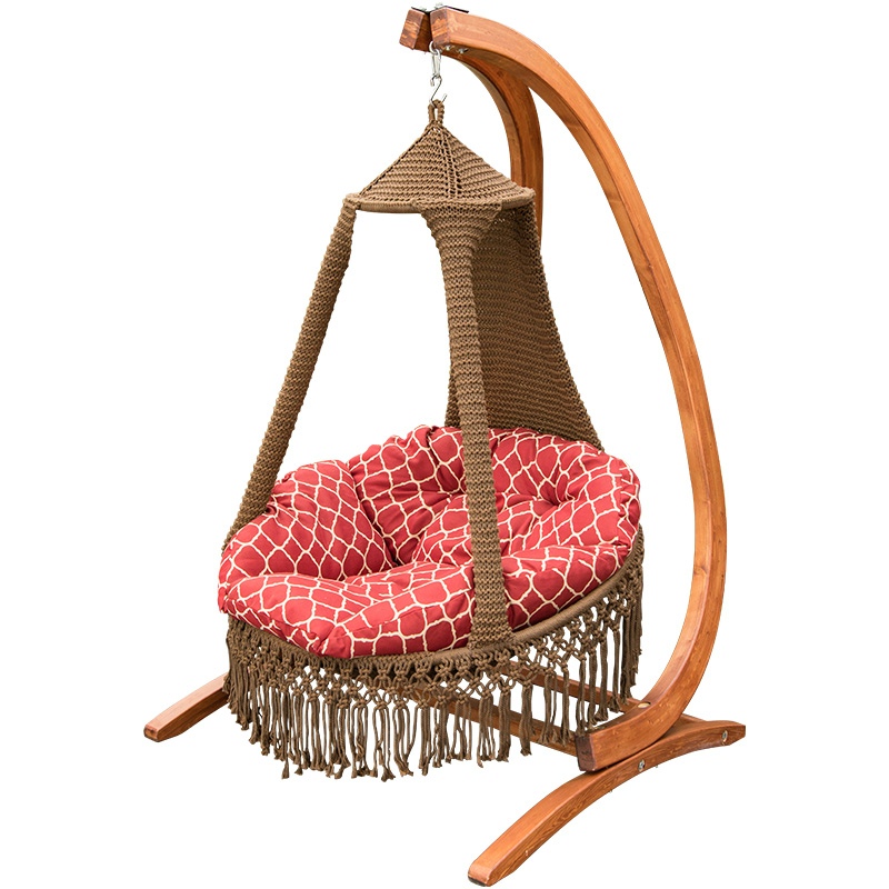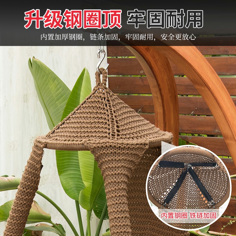 Hanging chair Home Balcony Knitted rope hanging basket Swings Outdoor Patio Chair Cradle chair solid wood rocking chair Swings Nacelle