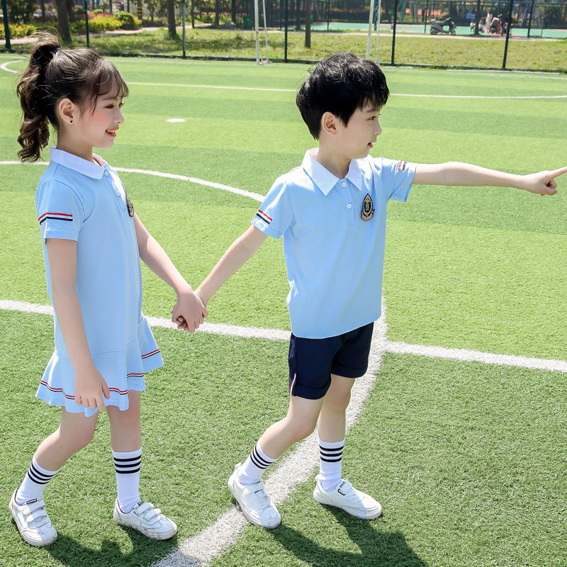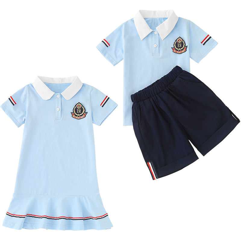 Kindergarten Garden Clothing Summer Clothing Pure Cotton Class Clothes Summer New Pint Elementary School Children Short Sleeve School Uniforms Children Graduation Photos Engllen Wind