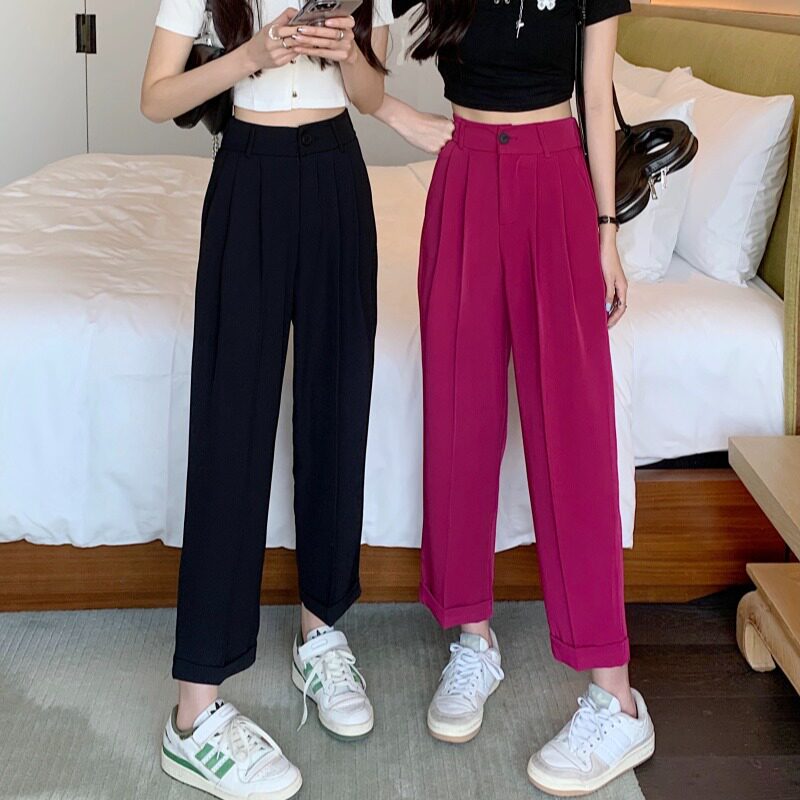 Fire Dragon Fruit Color Pants 2022 New Summer Straight Drum Pituality High Waist Rose Red West Dress Pants Little Sub Wide Leggings Pants