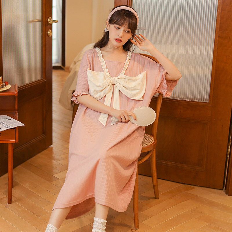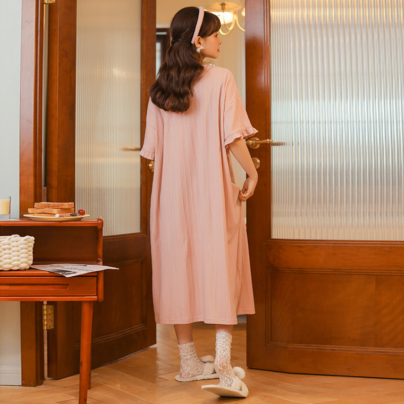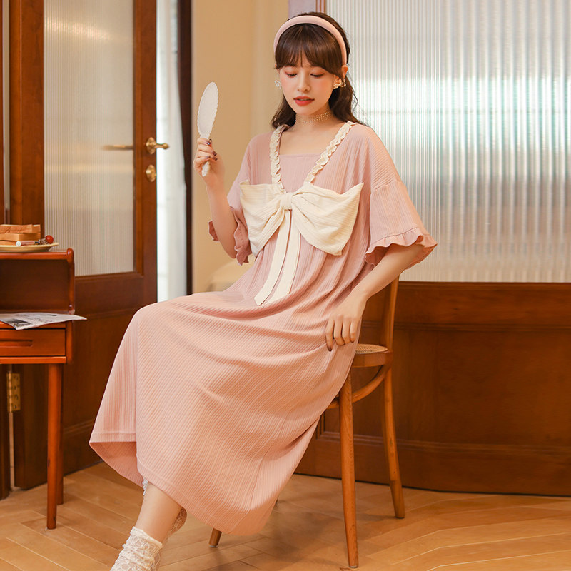 Sleeping Skirt Woman Summer 2022 New Knit Cotton Short Sleeve Retro Palace Court Casual Public Main Wind Teenage Pyjamas home clothes