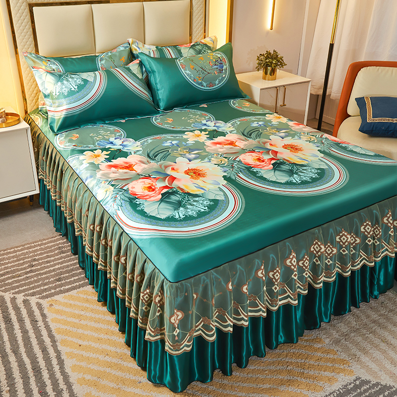 Houndstooth-Mei Lai (Ice Silk Bed Skirt) Send Pillowcases for Spring Flowers-Mei Lai (Ice Silk Bed Skirts) Send Pillowcases for Spring Garden Powder-Mei Lai (Ice Silk Bed Skirts) Send Pillowcases Rov Chanson-Mei Lai ( ice