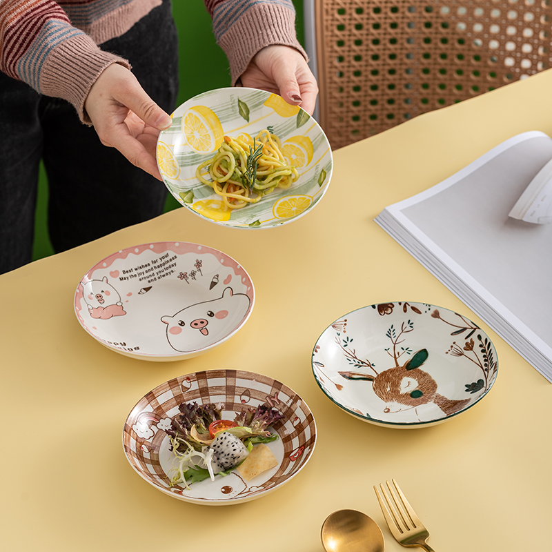 Just a small plate 6 inches 15 cm or so 6 inches fresh lemon 4 packs 6 inches casual bears 4 packs 6 inches cute deer 4 packs 6 inches pink pigs 4 packs 6 inches mix and match