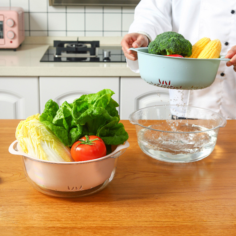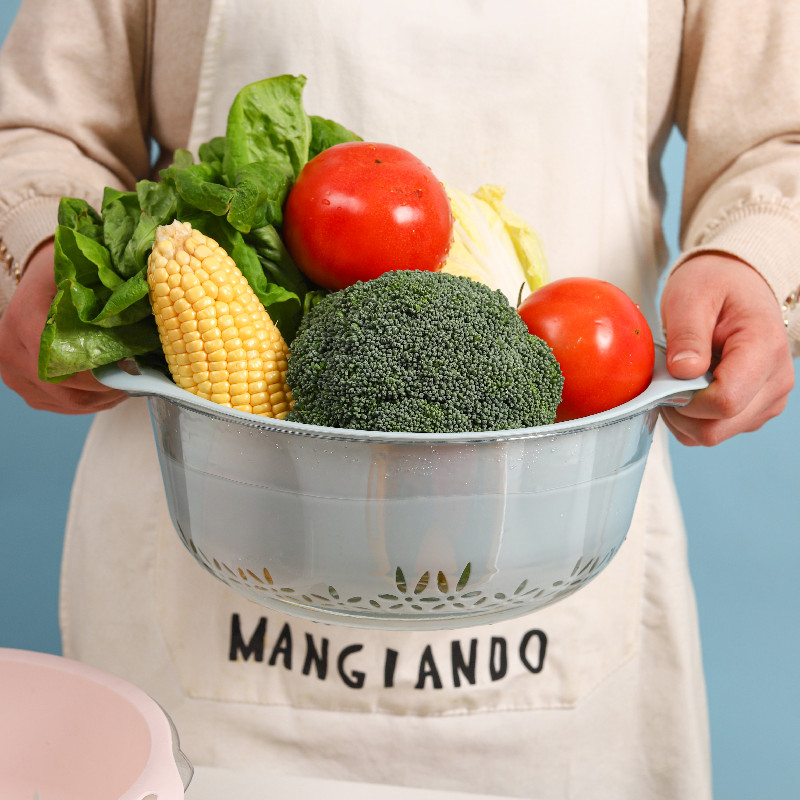 Double-layer vegetable wash basin drain basket plastic household kitchen wash basin drain water round vegetable wash basket filter basket leaking water basket