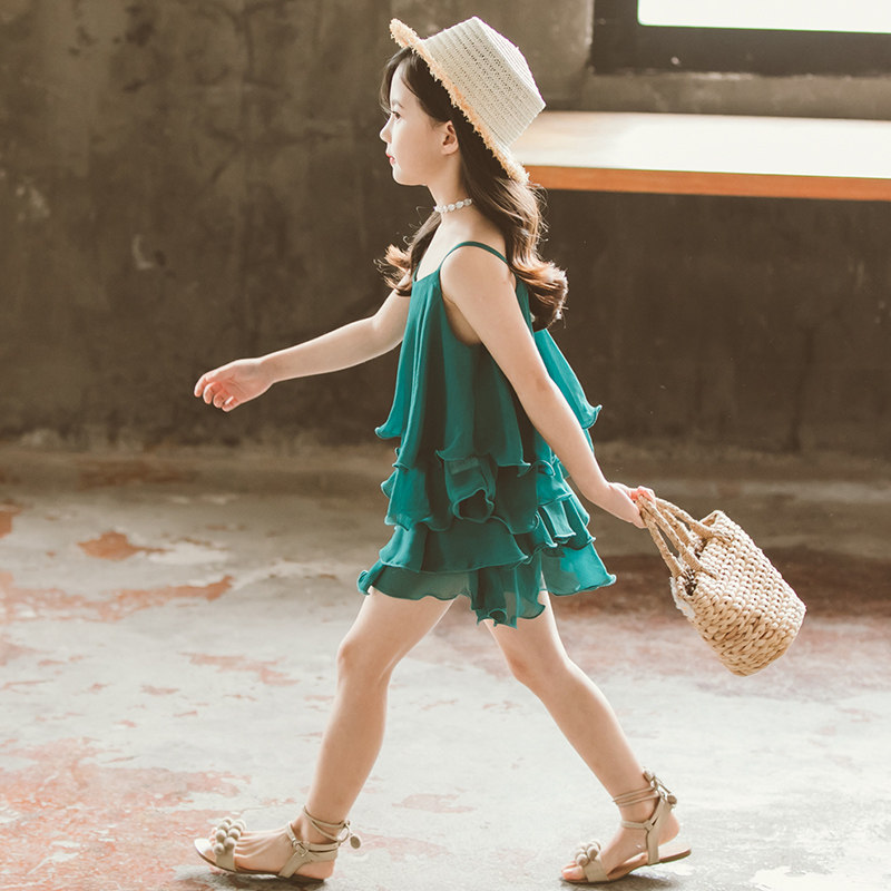 Girls dress summer dress 2022 new Western style baby girl Korean version suit chiffon suspender skirt children's princess skirt