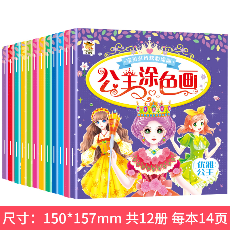 12 copies of the perfect Princess color book 2-6-8-10 years old children learn painting books introductory baby color books doodle Ben beautiful girls creative painting kindergarten painting enlightenment text materials