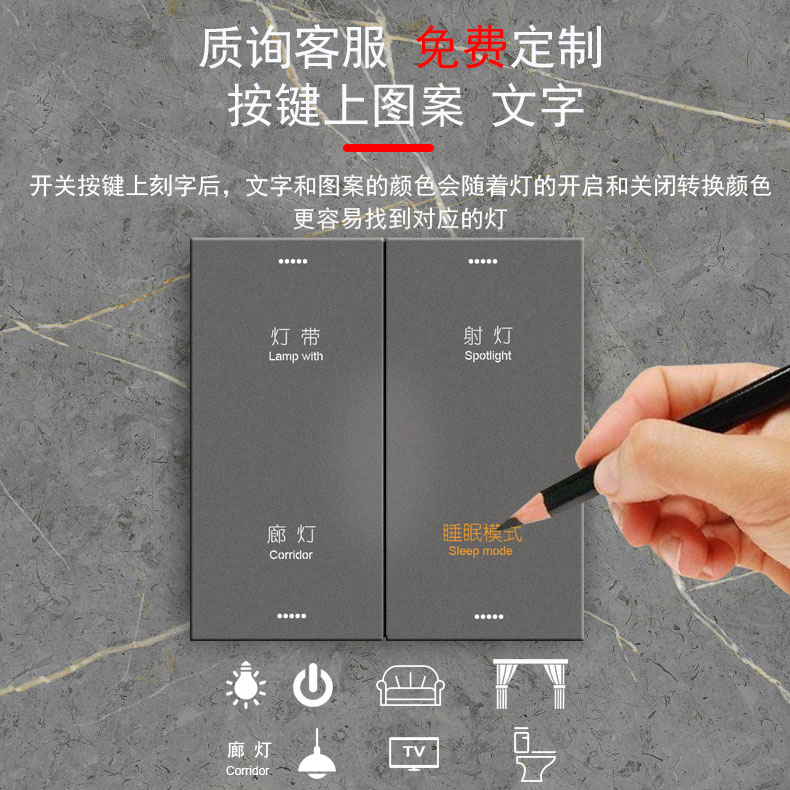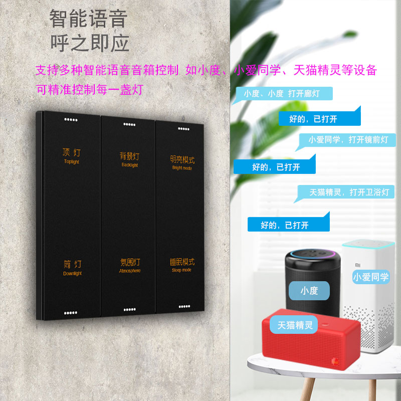 Whole house hotel aluminum plate touch voice mobile phone control ZigBee wireless tuya graffiti smart switch gateway