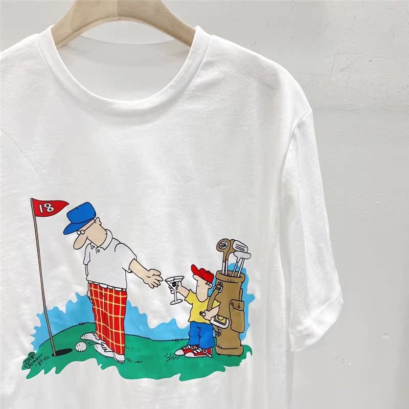 TD Korean original single print cartoon casual T-shirt white summer cotton loose short-sleeved student top female t