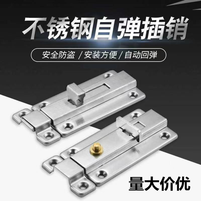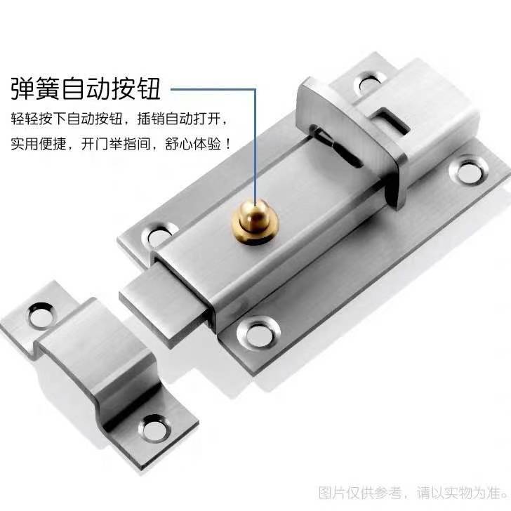 Thickened stainless steel self-bouncing bolt wooden door and window spring door buckle bathroom door bolt surface mounted left and right fixed bolt lock