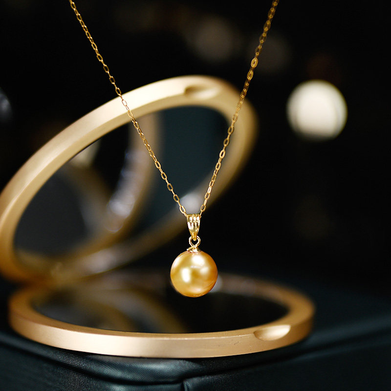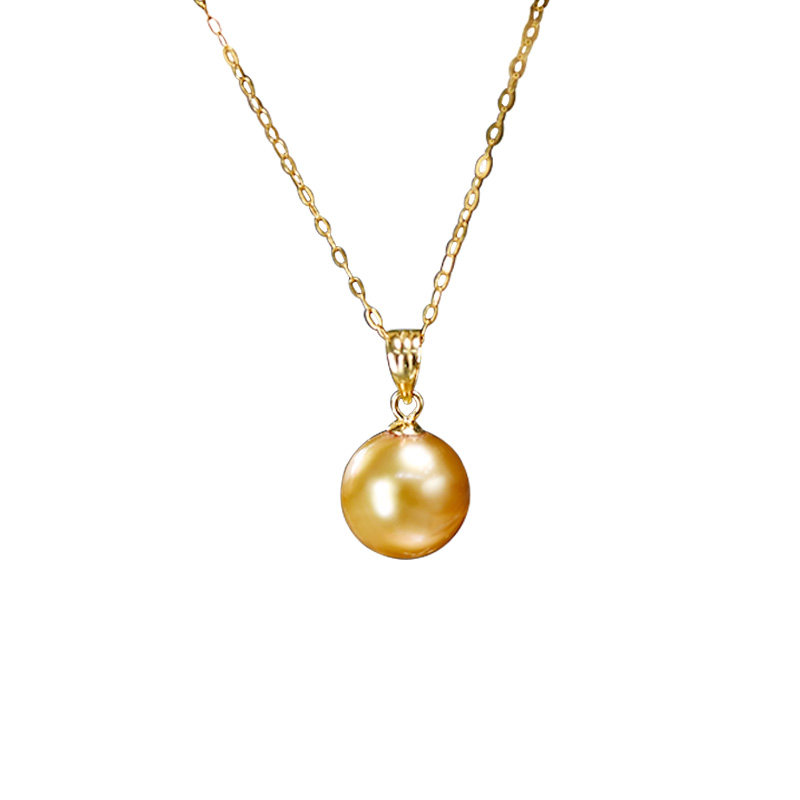 Nanyang gold pearl pendant 18K gold melon seed buckle pearl sea water Y word chain necklace near positive round 10-11mm Tahiti