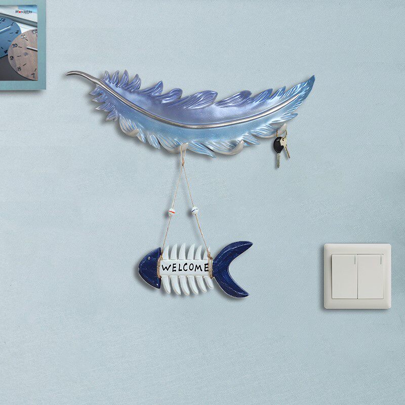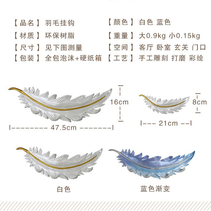 Light Extravagant Nordic Hook Creative Feather Hanging Clothes Hook Key Rack Wall-mounted Genguan Doorway Decoration Free Of Punch Clothe Hood Hook