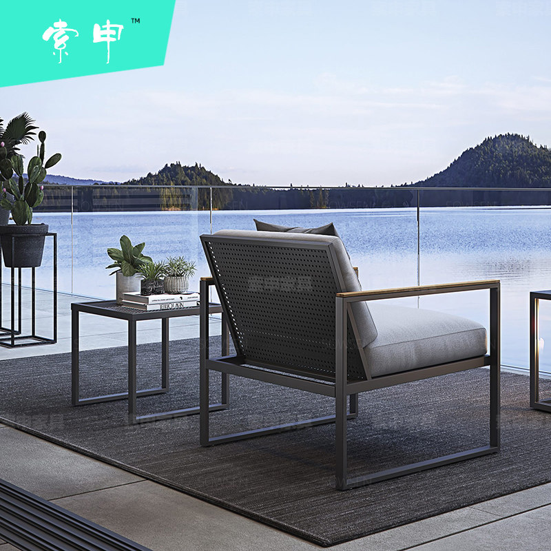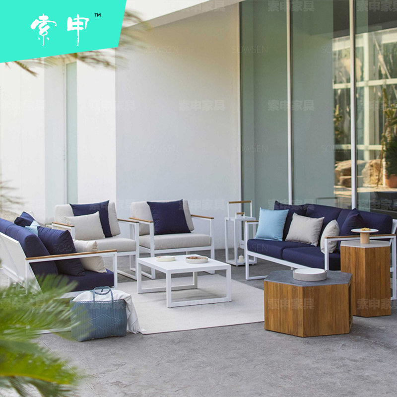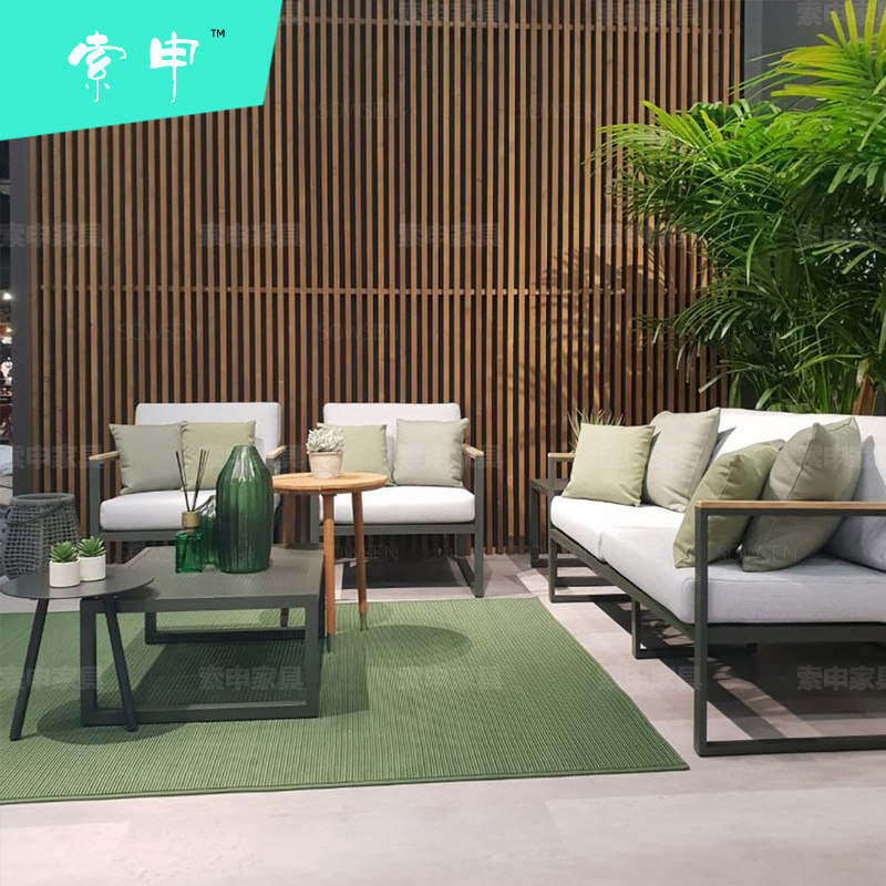 Outdoor Sofa Patio Combined Waterproof Sunscreen Outdoor Balcony Small House Type Iron Art Modern Teak Aluminum Alloy Furniture