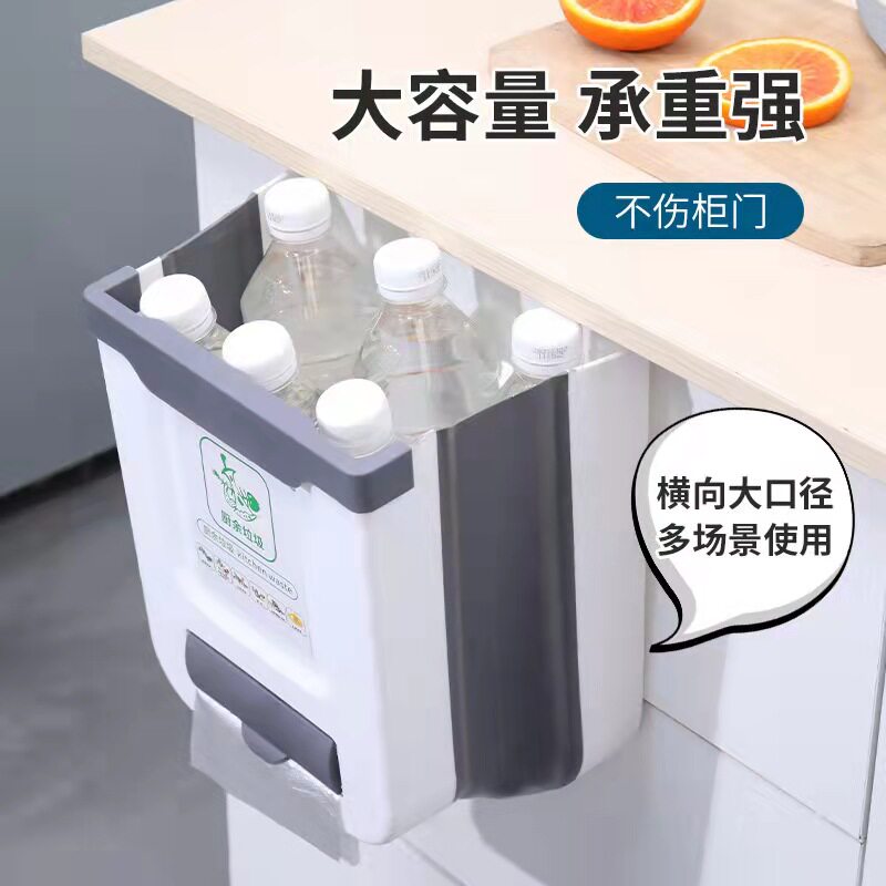 Kitchen household trash bin door wall to fold trash can be folded multi-functional thickness-mounted trash bin