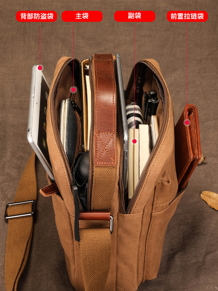 New Tidal Wave Casual Business Multifunction Men's Bag Men's Single Shoulder Diagonal Satchel Canvas Sport Small Scapegoat for Korean edition Chains