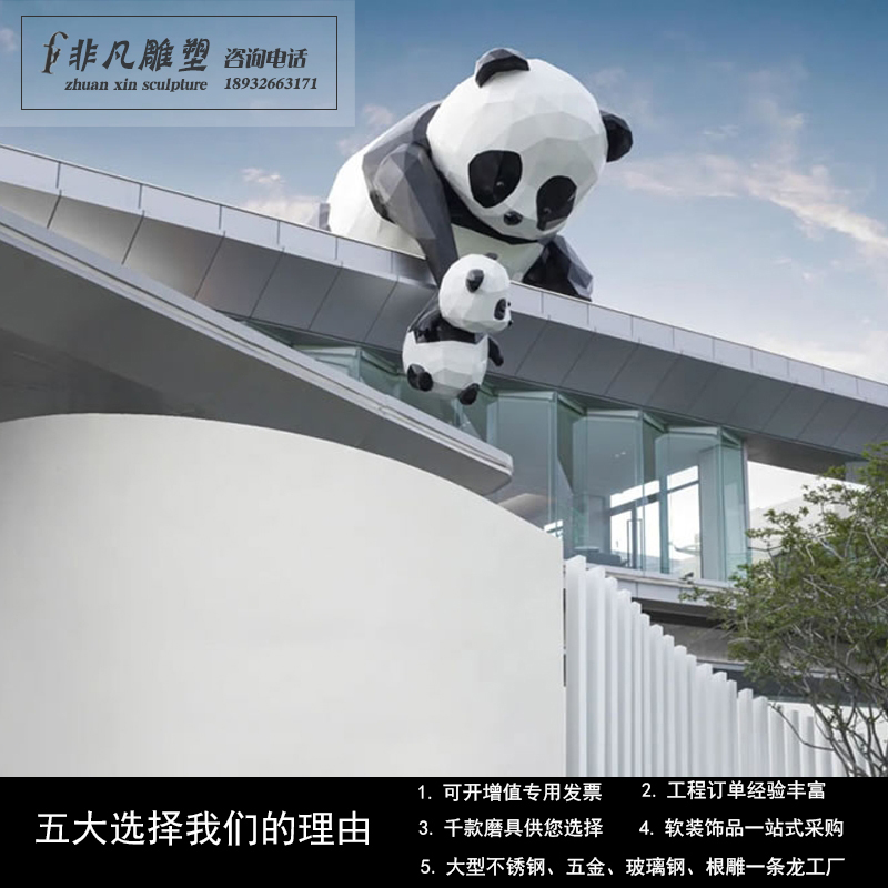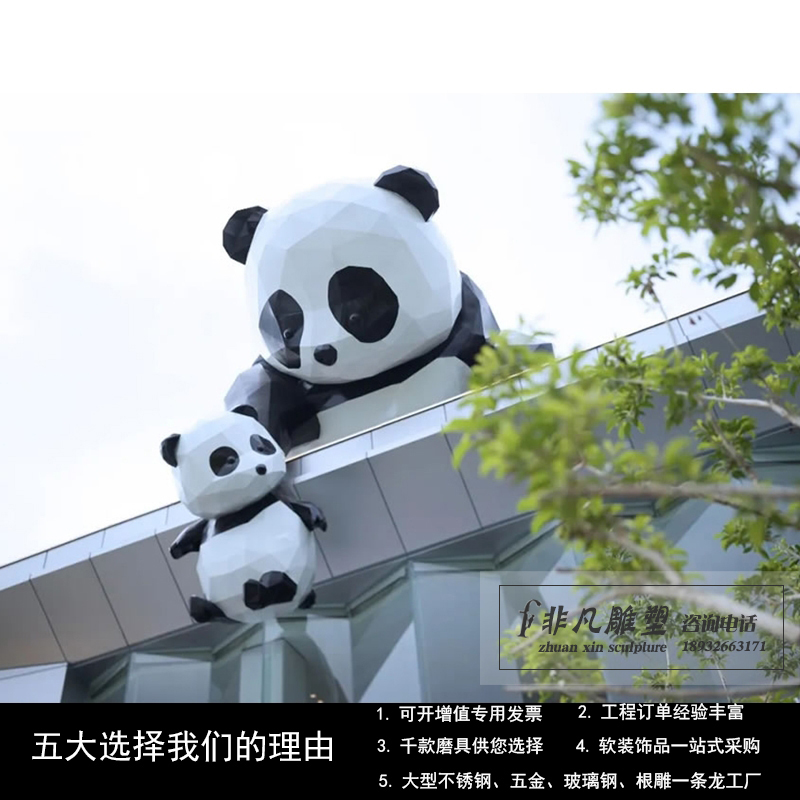 Custom Mesh Red Climbing Wall Panda Sculpture Chengdu Ifs Panda GRP Geometric Panda Resin Model Panda Pendulum-Taobao