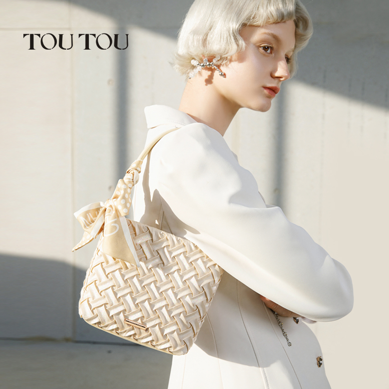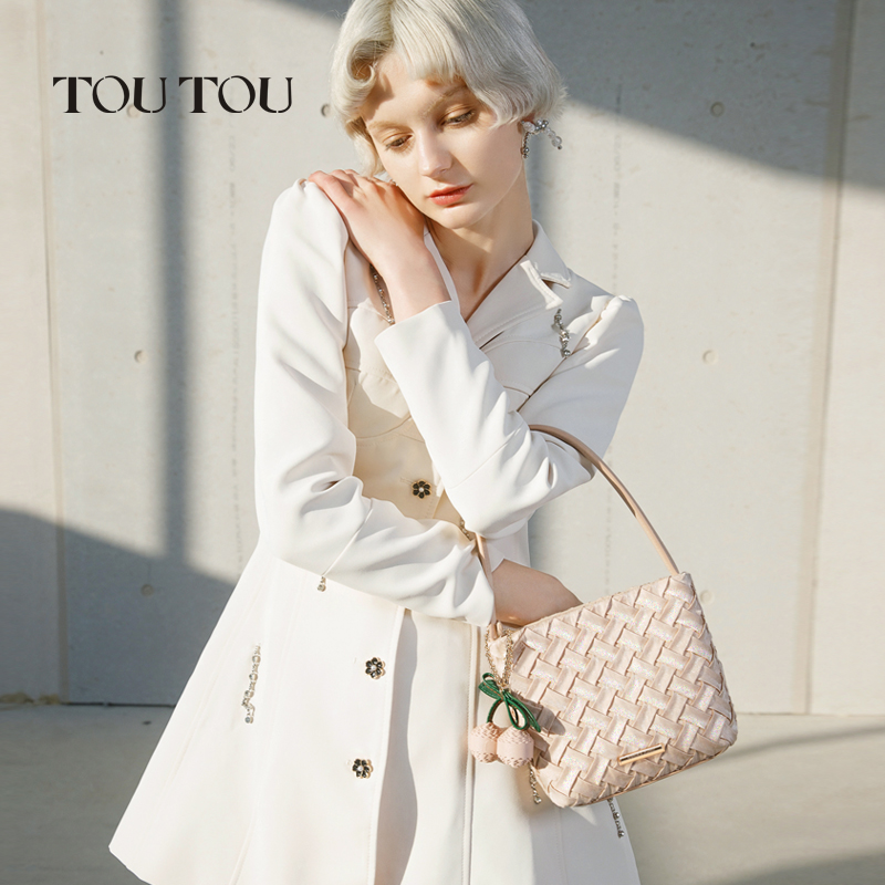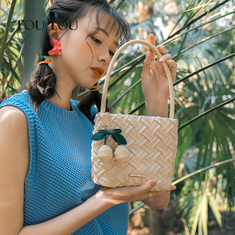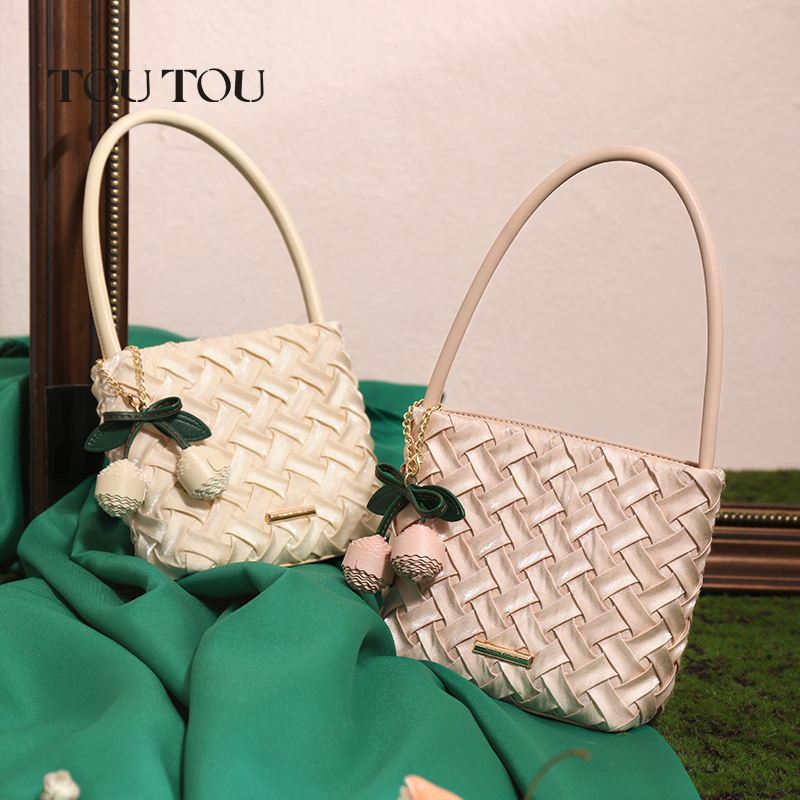 TOUTOU2022 summer new original niche design pink woven grandma bag hand-held fairy bag armpit bag