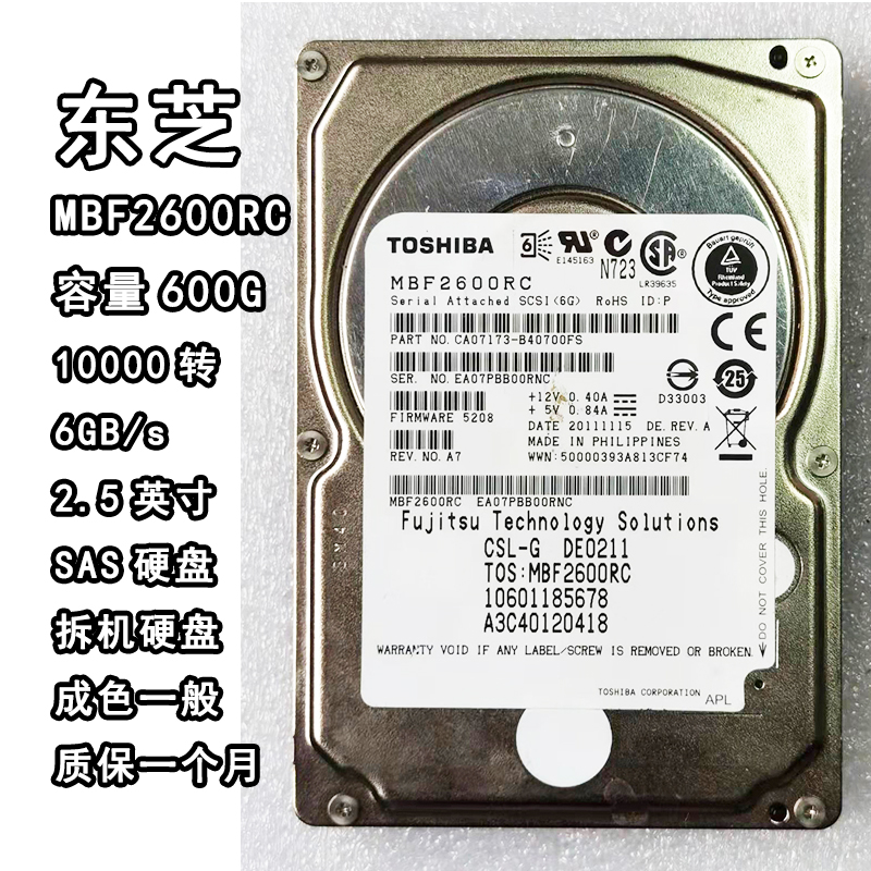 TOSHIBA Toshiba MBF2600RC AL13SEB300 2 5 inch 600G 10K 6GB SAS hard drive