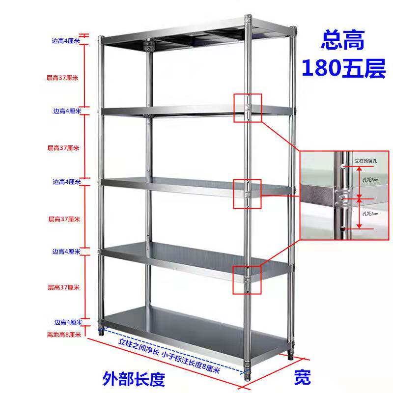 Stainless steel kitchen shelf floor-to-ceiling multi-layer storage shelf multi-functional microwave oven oven pot rack storage shelf