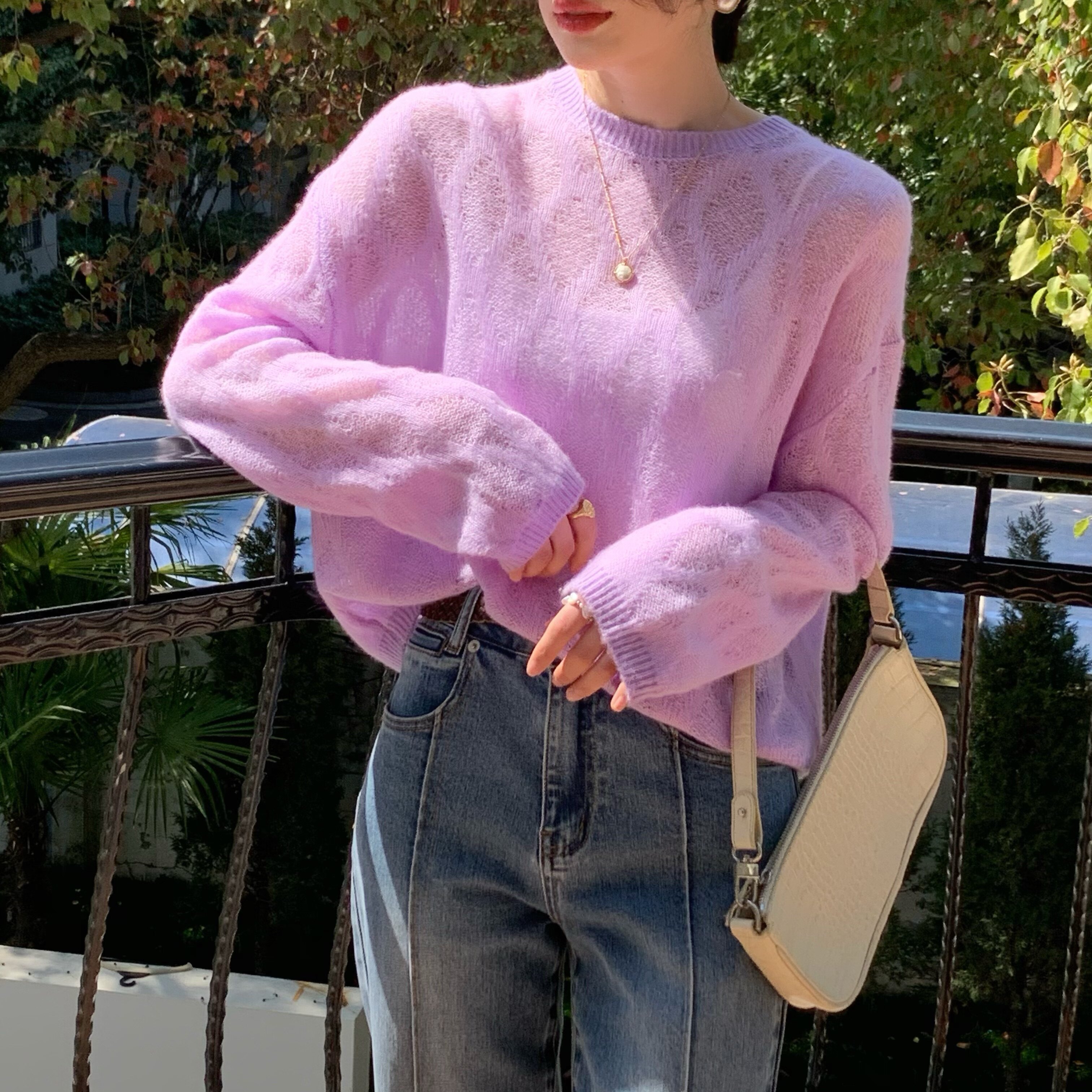 Soft and soft white - round neck version of Bellflower purple - round neck version of soft white - cardigan version of spring lily green - cardigan version of spring lily green - round neck version of Bellflower purple - cardigan version of sea salt milk mint - cardigan version of sea salt milk mint