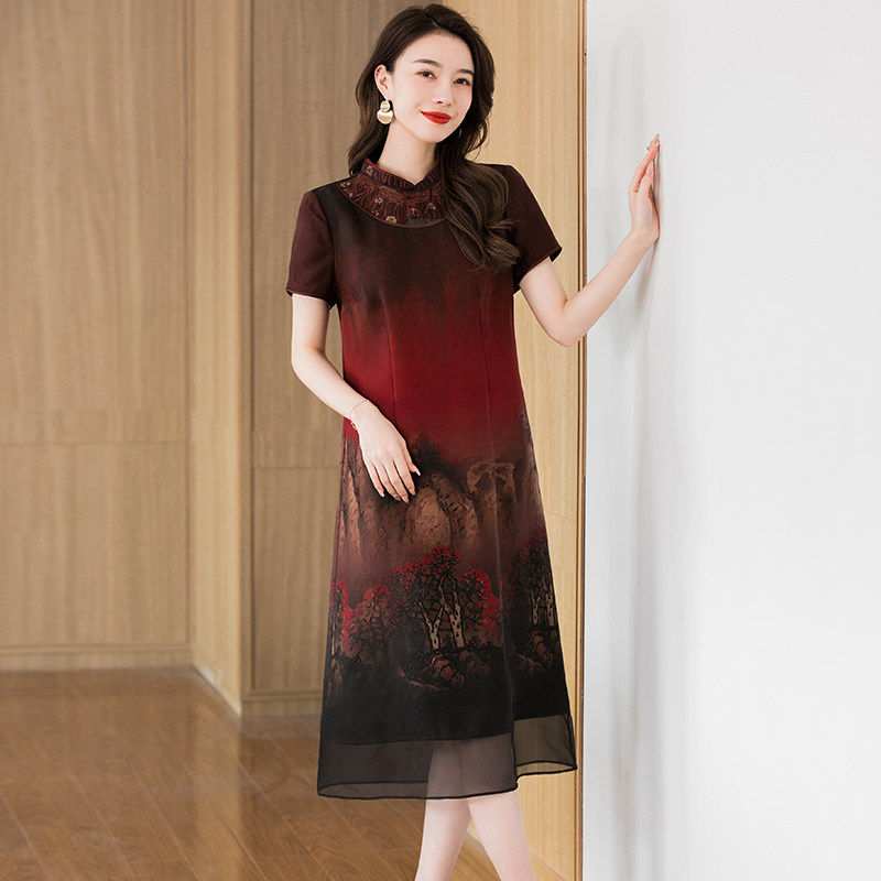 Special Price Clearing House Rich Wife High-end Incense Cloud Yarn Foreign Dress Qipao Improved Real Silk Dresses Big Cards Easy To Cover