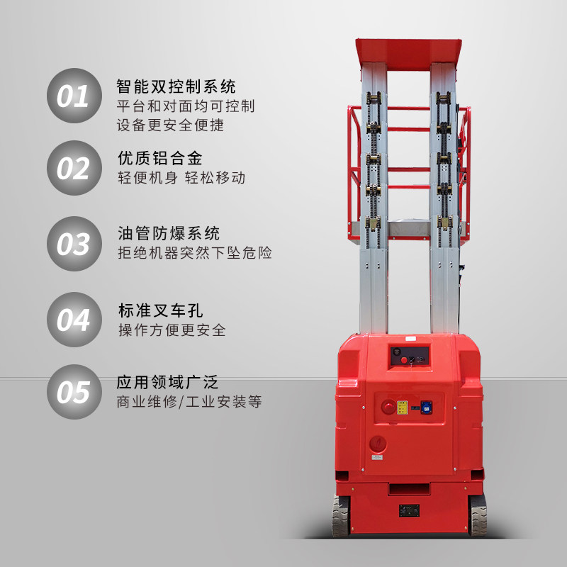 Aluminum alloy double-column lift platform mobile household small aerial work electric hydraulic lift truck