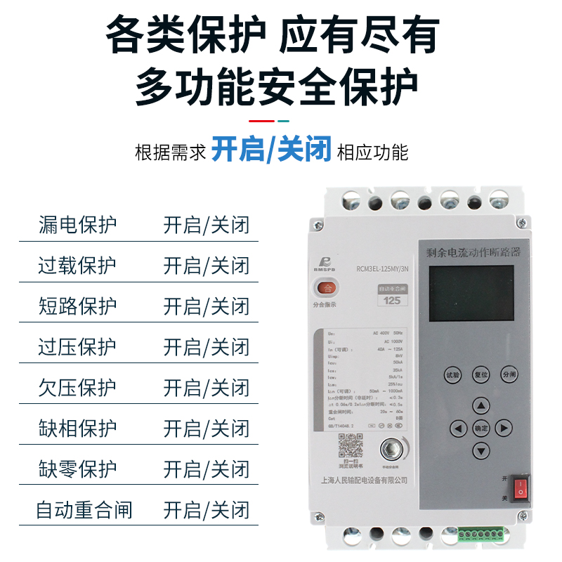 Shanghai People's Intelligent Automatic Reclosing Residual Current Action Breaker Protection 380V Photovoltaic Mergers Net Switch