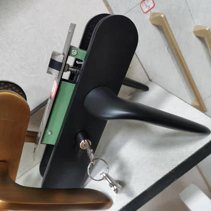 Door lock Indoor bedroom door lock American black yellow ancient solid wood door handle Home mute door lock tool 777-02