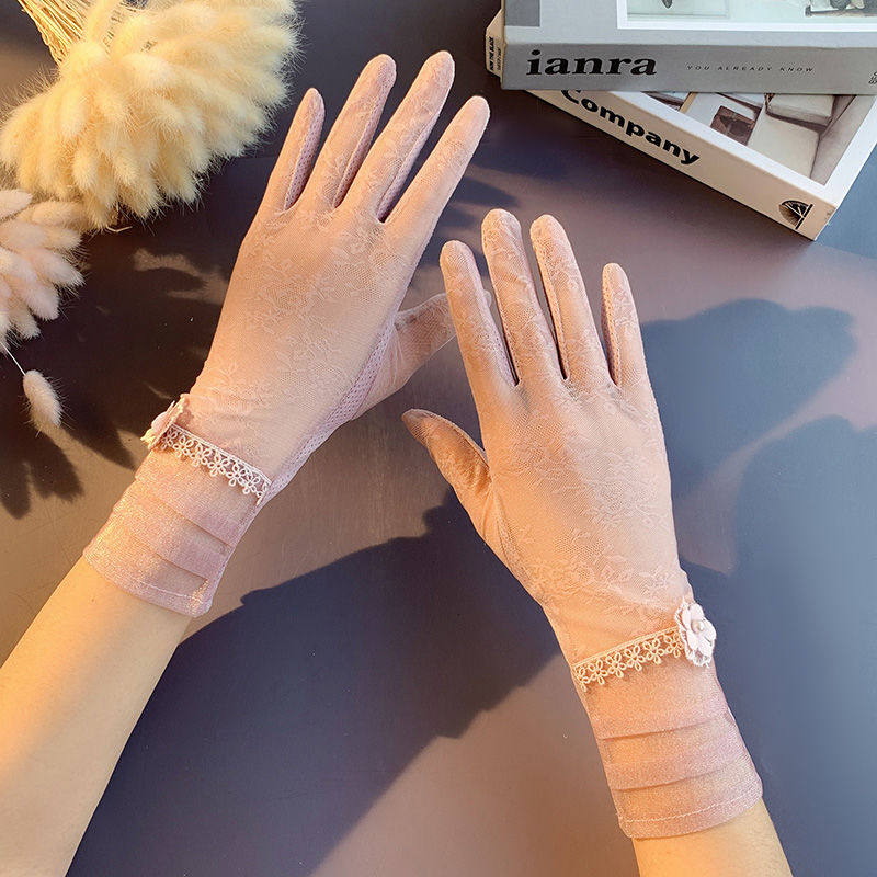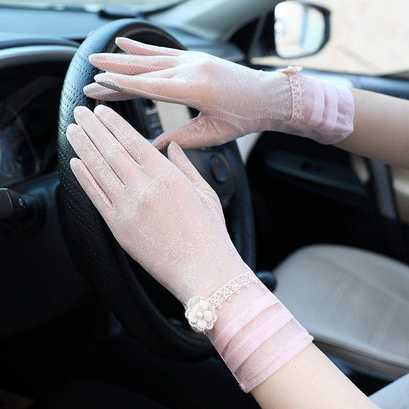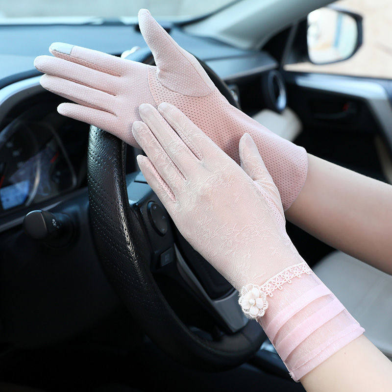Sunscreen Gloves Lace Summer Sun Protection Electric Car Ice Silk Gloves Women Thin models Driving outdoor bike Touch Screen Anti-slip