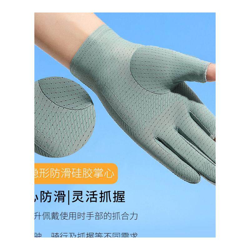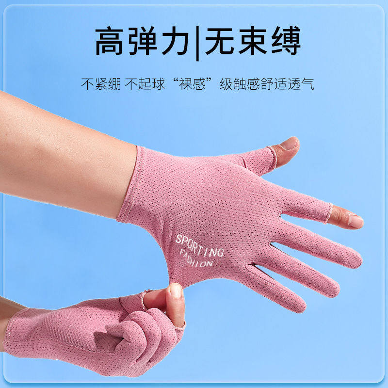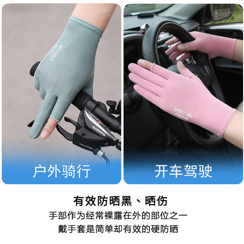 Ultra thin sun protection gloves female spring and summer sky breathable speed dry ice silk riding drive non-slip shading gloves leakage two fingers