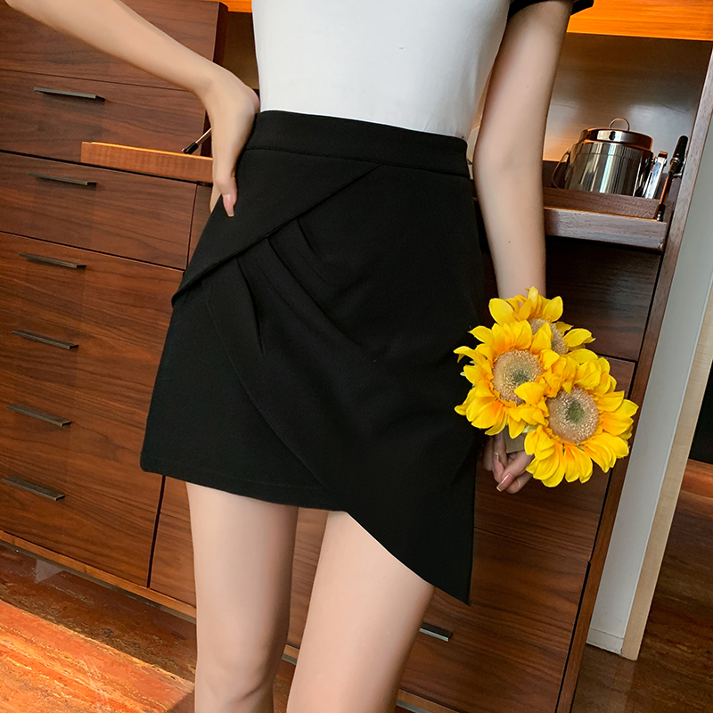 Irregular half body dress spring and summer new a character dress small Han version Fashion temperament slim and high waist black short dress