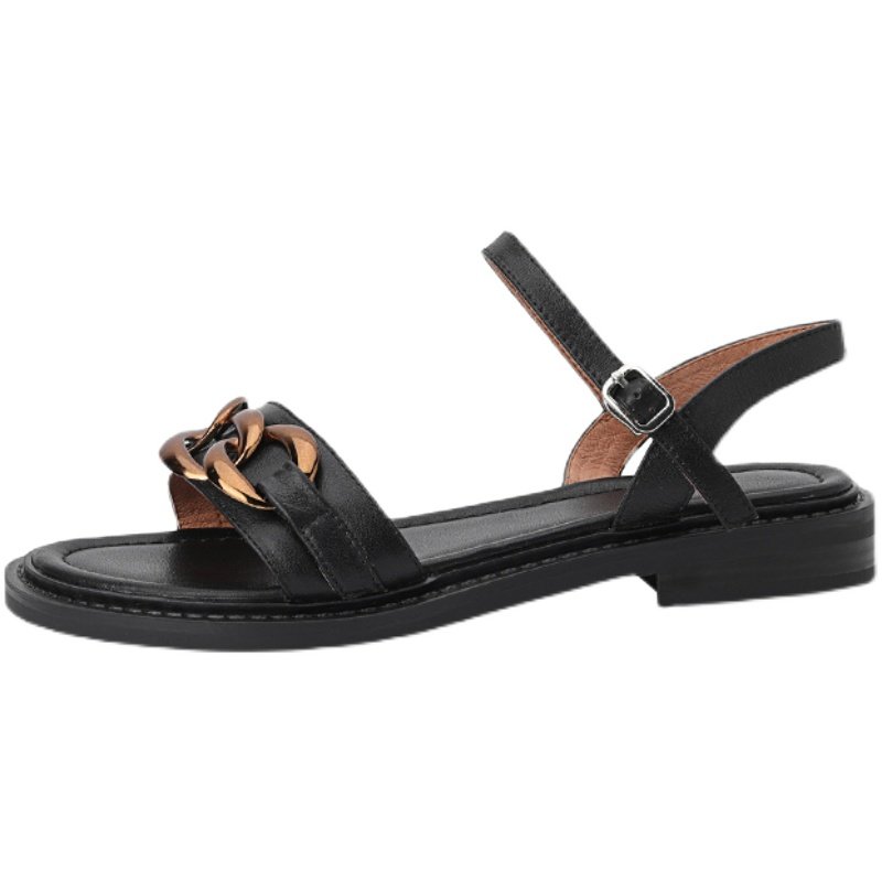 RMARK black kite tail flower retro flat bottom sandal women Summer 2022 Soft bottom genuine leather lined with sandals 2 5cm